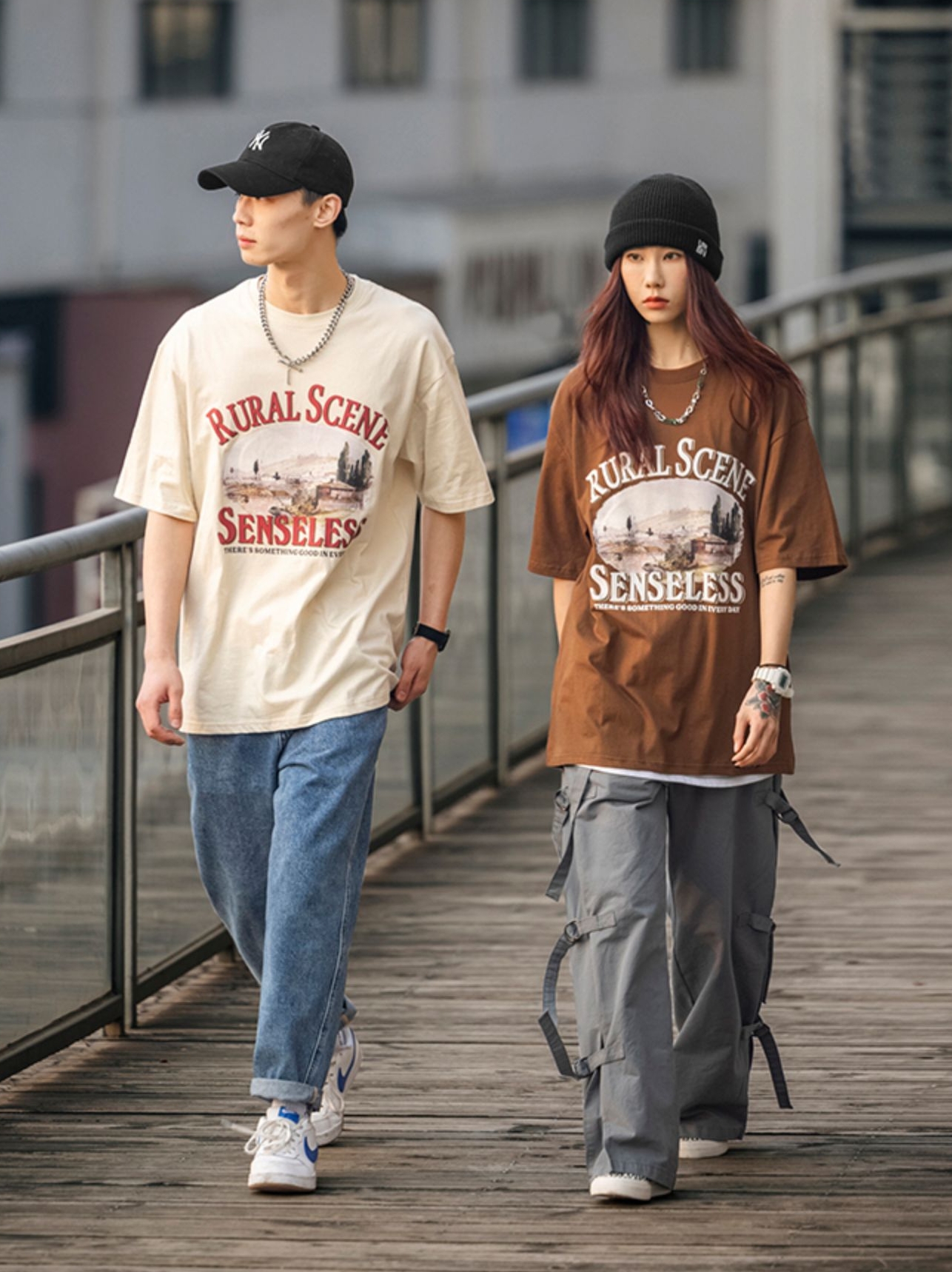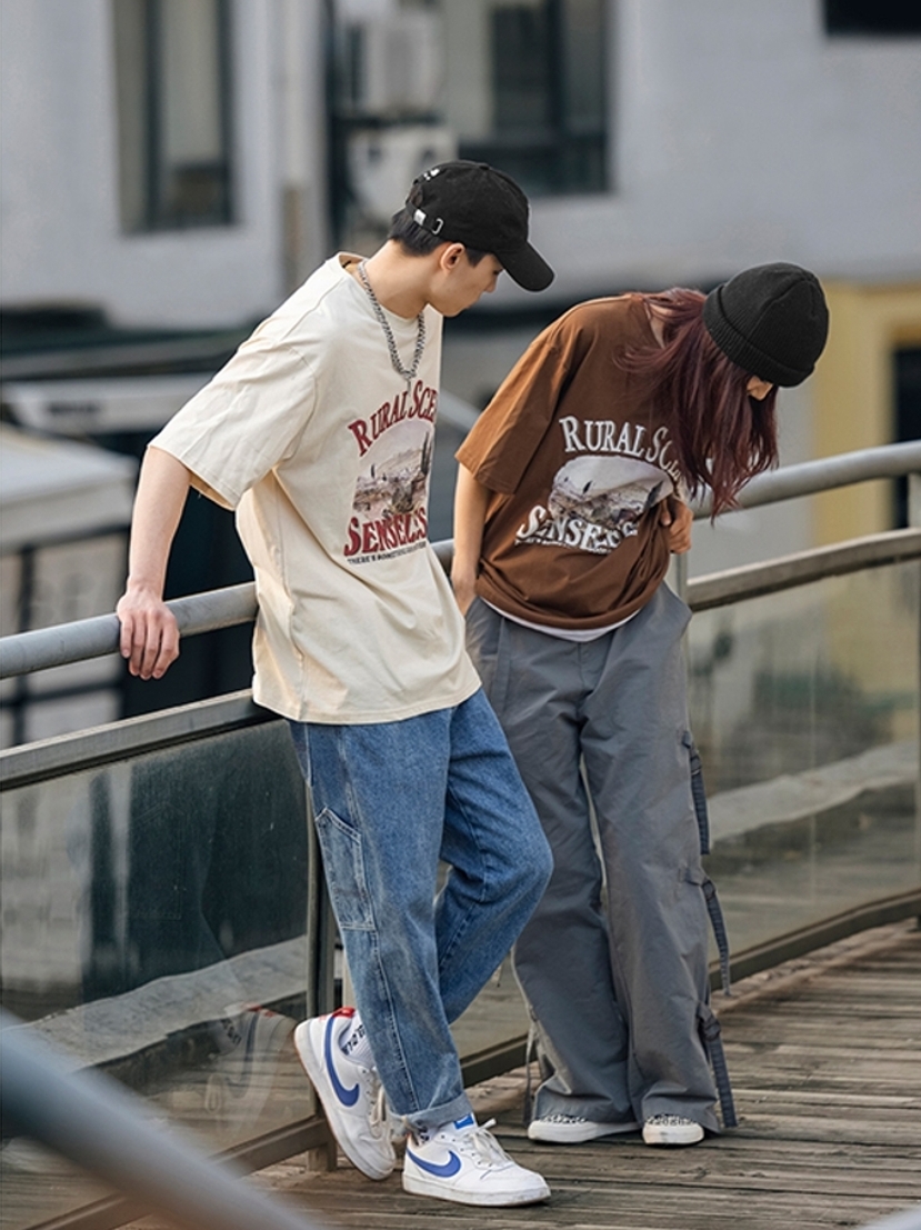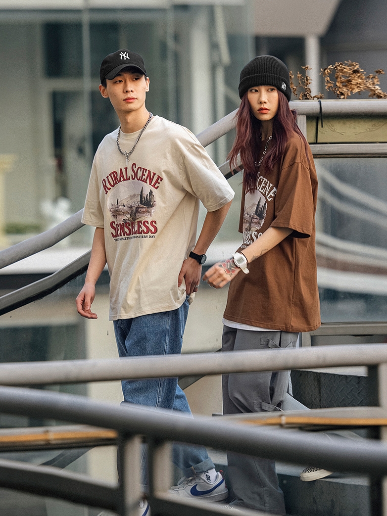 这是一款很简约的印花t恤,简洁的版型设计,流畅的线条,让这款t恤穿着起来很是有线条感,在加上经典的配色,让这款t恤充满了时尚感。胸前大面积撞色印花图案设计,让整款t恤更有个性,充满了简约的时尚态度,很适合夏日出街穿着。
