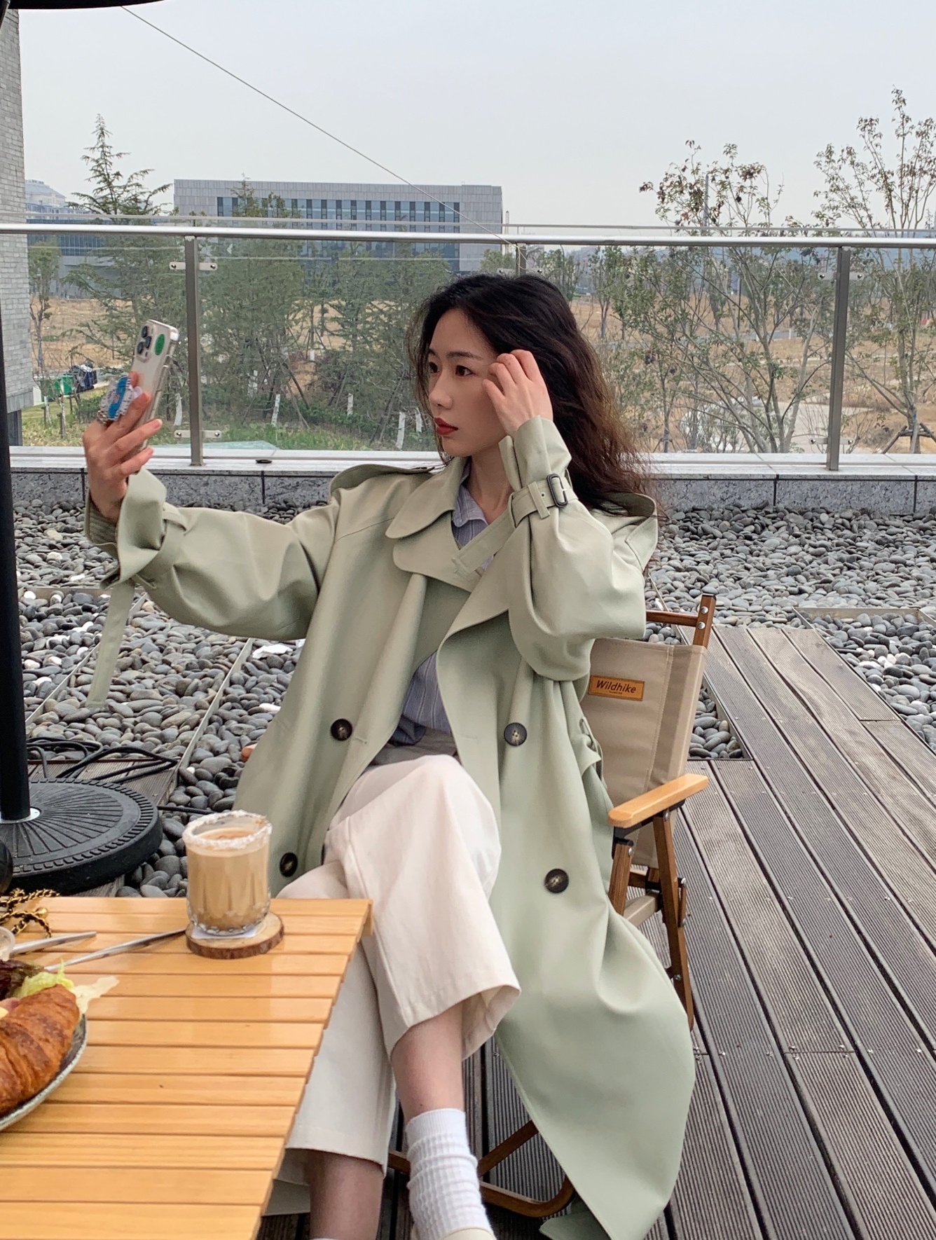 中长款的风衣版型很是简约随性,大翻领的设计尽显时尚优雅的气质,凸显女性高冷迷人的个性,腰间的系带设计能很好的拉长身材比例,尽显纤细苗条身姿,同时还能显得落落大方。