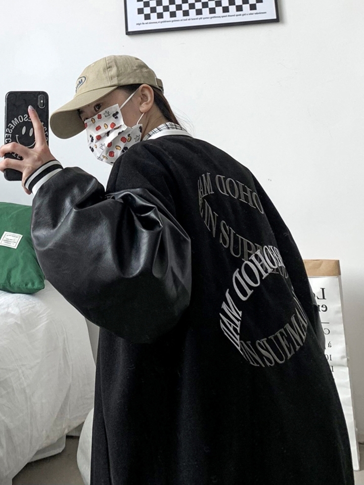 高街范十足的棒球服,棒球服在秋冬就没有被时尚落下过,这款棒球服把一贯的纯色换成了好看的字母印花设计,和时兴的棒球服轮廓相结合,让衣服看起来很有质感。