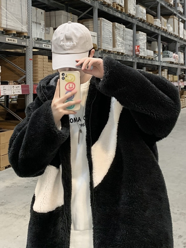 看起来就很暖暖的感觉,卷起来可爱许多~ 韩范儿~ 口袋拉链丰富细节,精致blingbling~ 手塞棉分布均匀,温暖不减哦!! 大身矩形压线分割。