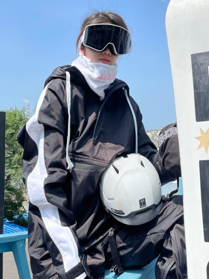 这款滑雪服采用优质面料,超级防水,吸湿排汗,透气效果特别好,能持久保持干爽透气;后摆防风裙设计,有效阻挡冷风,增强保暖性能;下摆松紧绳设计,有效防止冷风灌入,双层防风袖口,提高穿着舒适度。