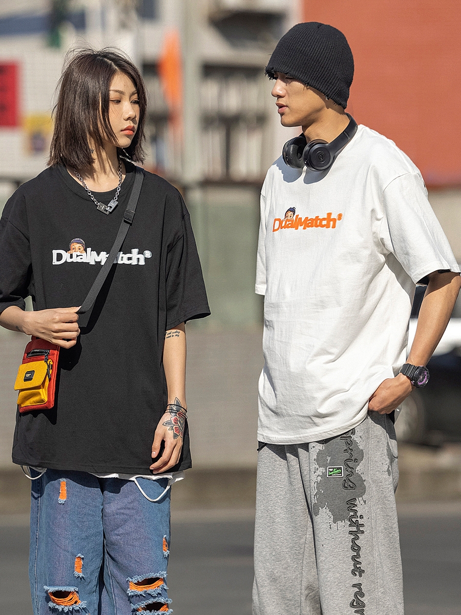 时尚休闲港风系T恤,今天推荐这款是很有潮味的~简约宽松,给人轻松自然的感觉~双层的圆领设计、中间的几个超大英文字母,显得更加独特哈~夏天可以搭配黑色牛仔裤,时尚休闲味道就出来啦~~
