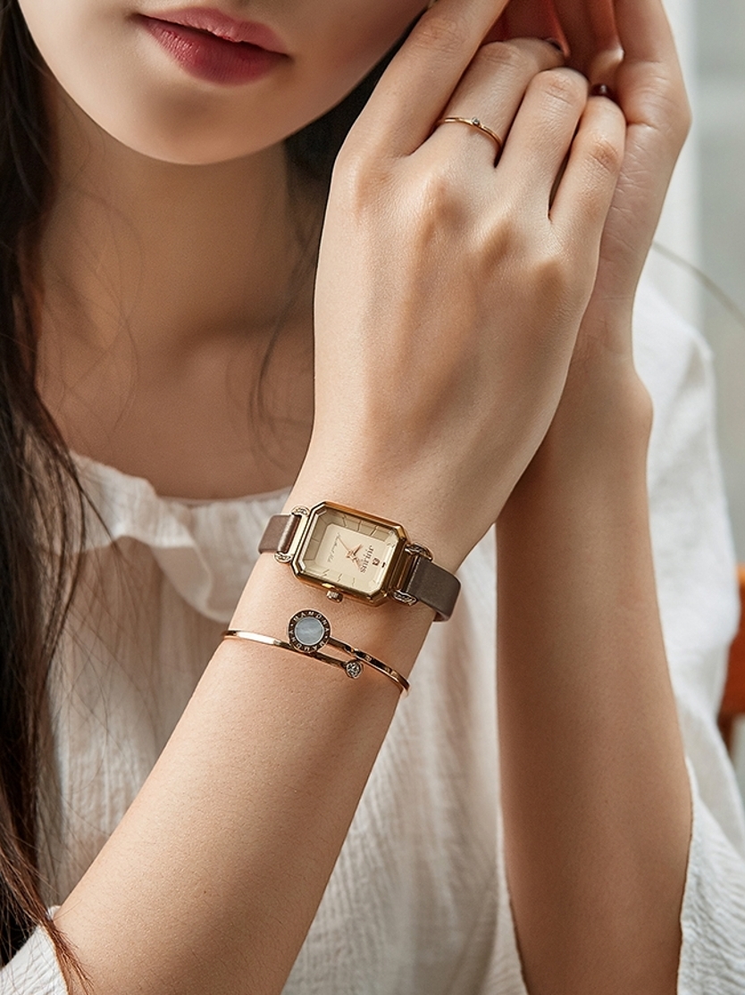 它的表带采用皮革制作,柔软度很好,戴上软软糯糯的很舒服,而且光泽度也很好,看起来也很显高级,还很好打理。