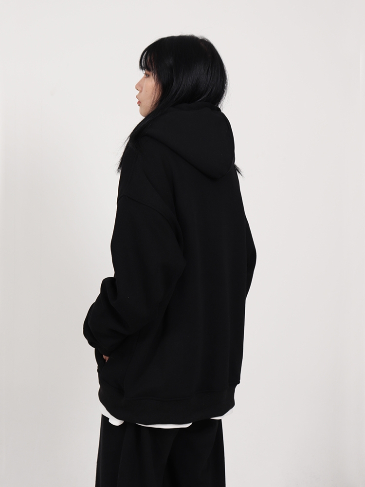 此款采用宽松版型搭配松松垮垮的落肩袖,在释放轻松运动气息的同时又诠释出自由随性的慵懒风格,透过街头流行的黑色调衬托。