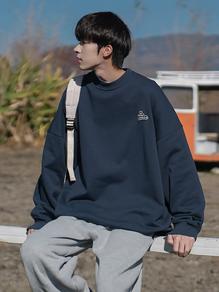 纯棉的卫衣料,螺纹也是纯棉,非常亲肤舒适。经典的圆领,简约的款型设计,落肩版型设计,配合低调的藏蓝色,包容身材,简约大气,时髦有型。