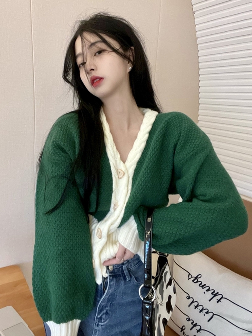 短款的灯笼袖子的开衫,十分的讨巧的惹人喜爱,且十分的修身显出窈窕的身姿,清新的配色也很衬肤色,短款版型带着利落的格调哟。