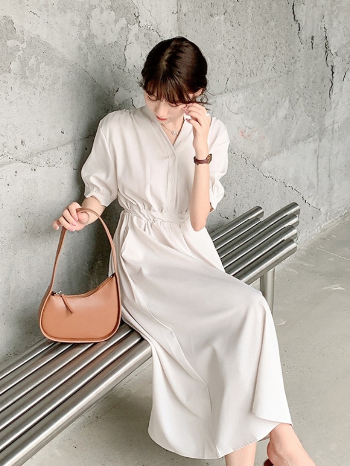 源自时尚品牌Siti Selected推出的新款连衣裙,简洁大方的V领剪裁,露出迷人的香肩,很是性感,结合围裹式系法的腰带设计,上身显瘦效果非常好。颜色是干净的白色,唯美又浪漫,加上过膝的裙长和精湛的绣花工艺,营造出一种若隐若现的朦胧感,特别耐看。