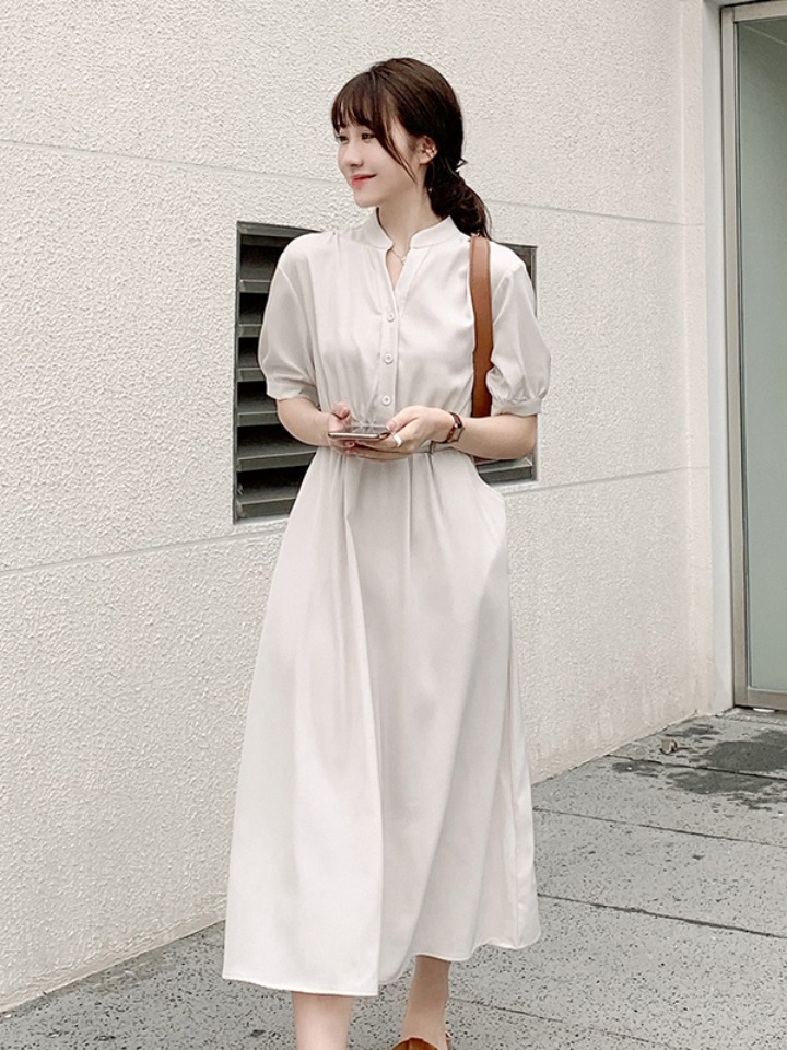 一款日系小清新的连衣裙。衬衫式设计,纯棉材质,亲肤舒适。加上个性镂空刺绣装饰,简洁的白色,尽显气质。