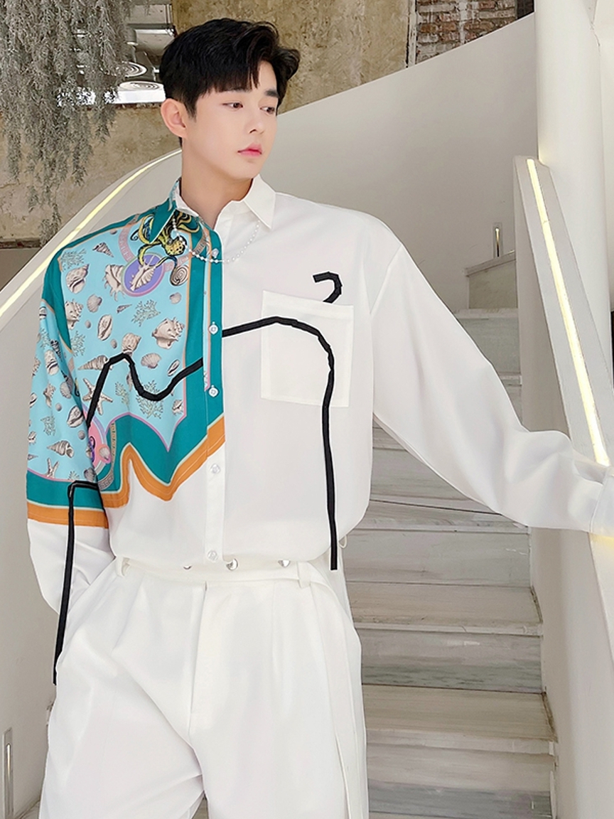 一款很时尚个性的衬衫,金典的翻领设计很时尚大方哦,胸前涂鸦的点缀,打破单调感,趣味别致,打造街头的时尚潮流。