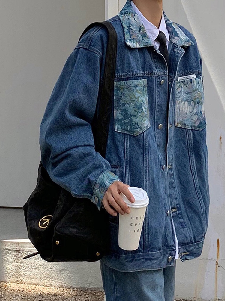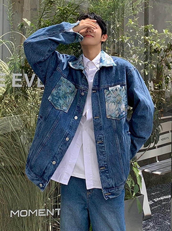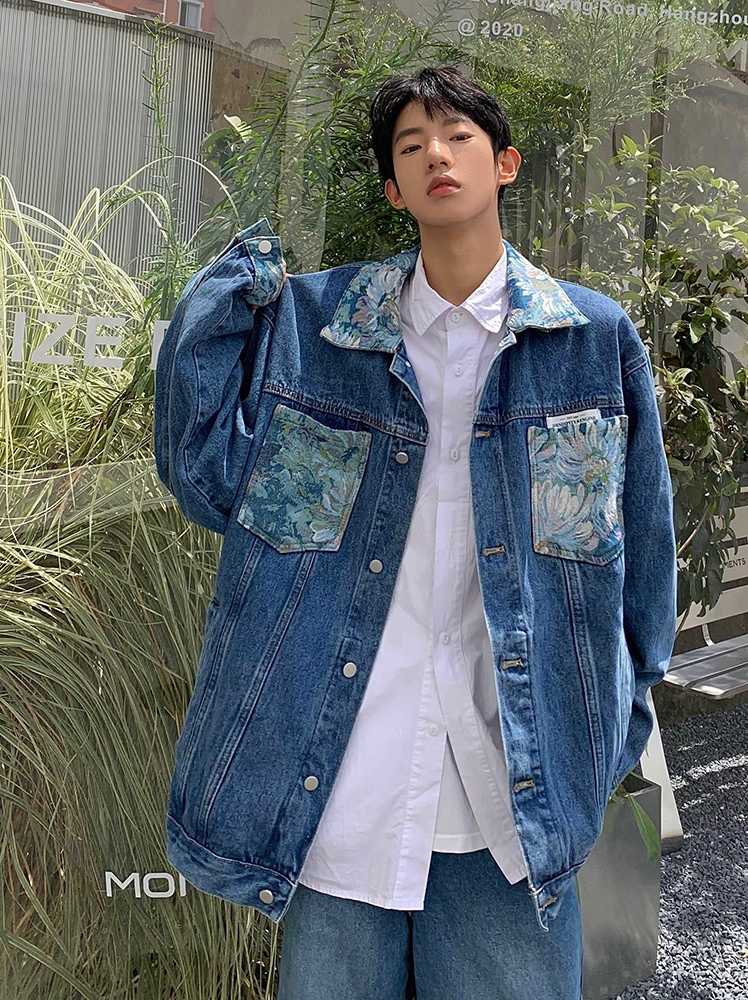 宽松帅气的牛仔外套,经典的版型,车线采用明线撞色车缝,轮廓更为鲜明,更显不羁的随性格调,袖口衬衫式开叉设计,韵味十足