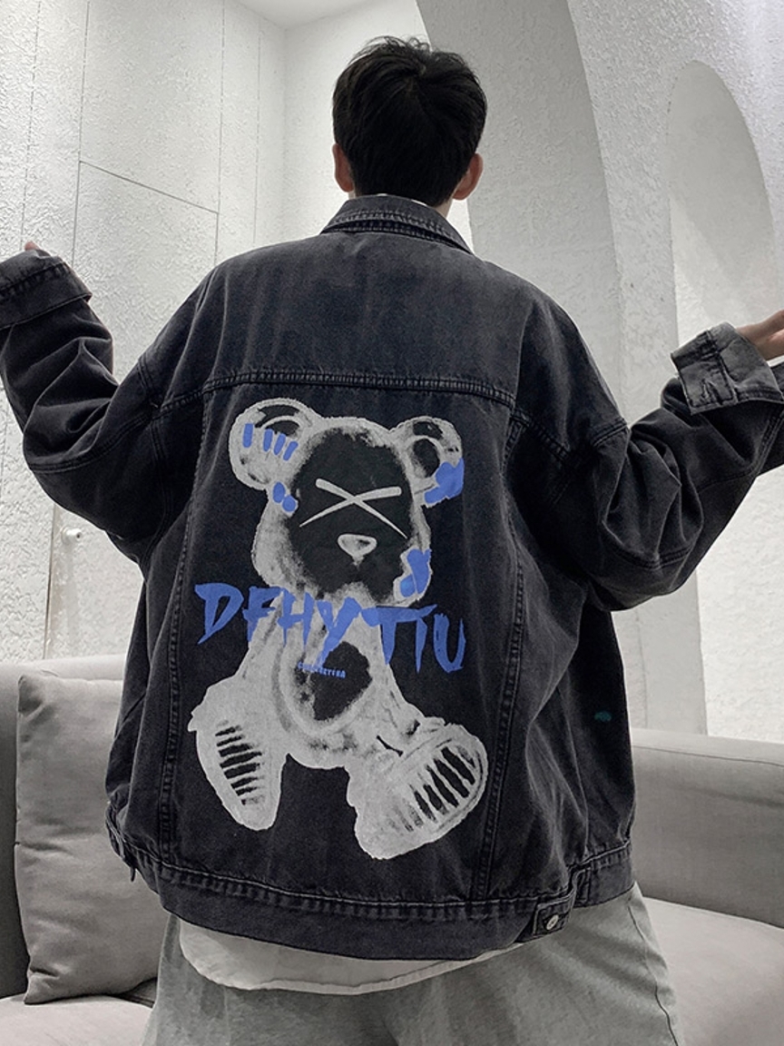 后背大大的撞色小熊图案,打破了纯色的单调感,增加了吸睛指数,经典的小翻领,将你帅气的脸庞衬托得更加精致。