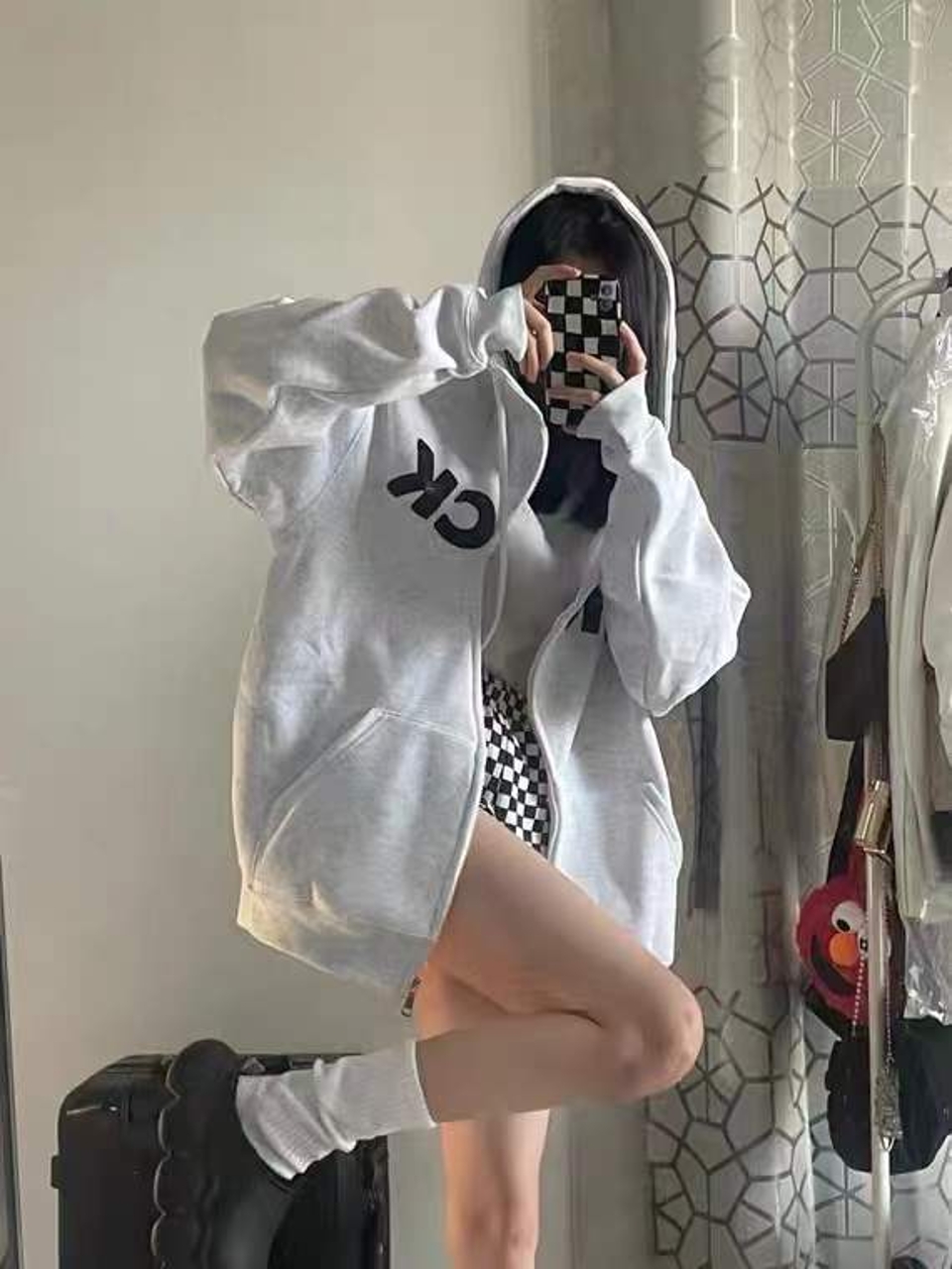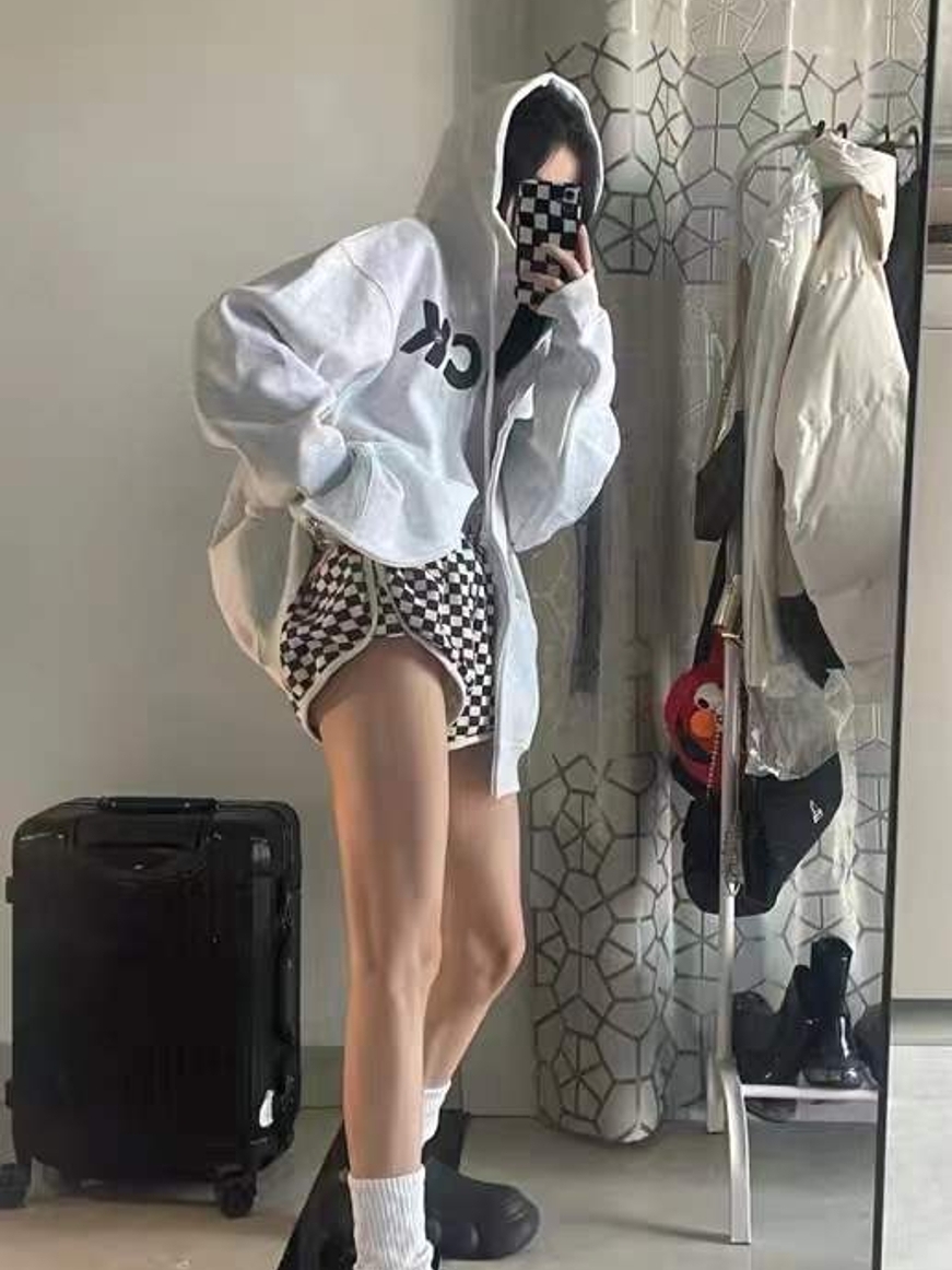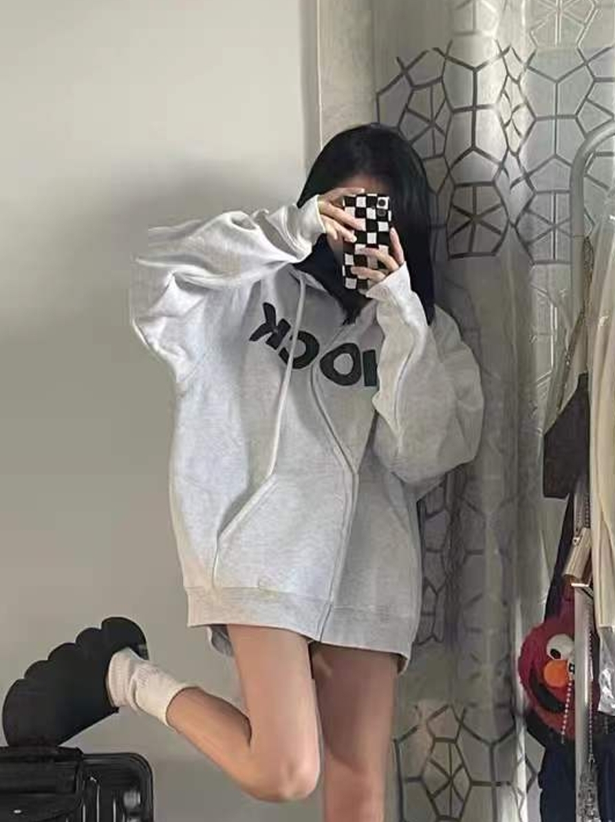 这是一款宽松的连帽套头卫衣,以前短后长的造型搭配搏击俱乐部主题印花,鲜明撞色将清新元素演绎得更富摩登魅力。连帽休闲款,配以直筒长裤、浅色板鞋。