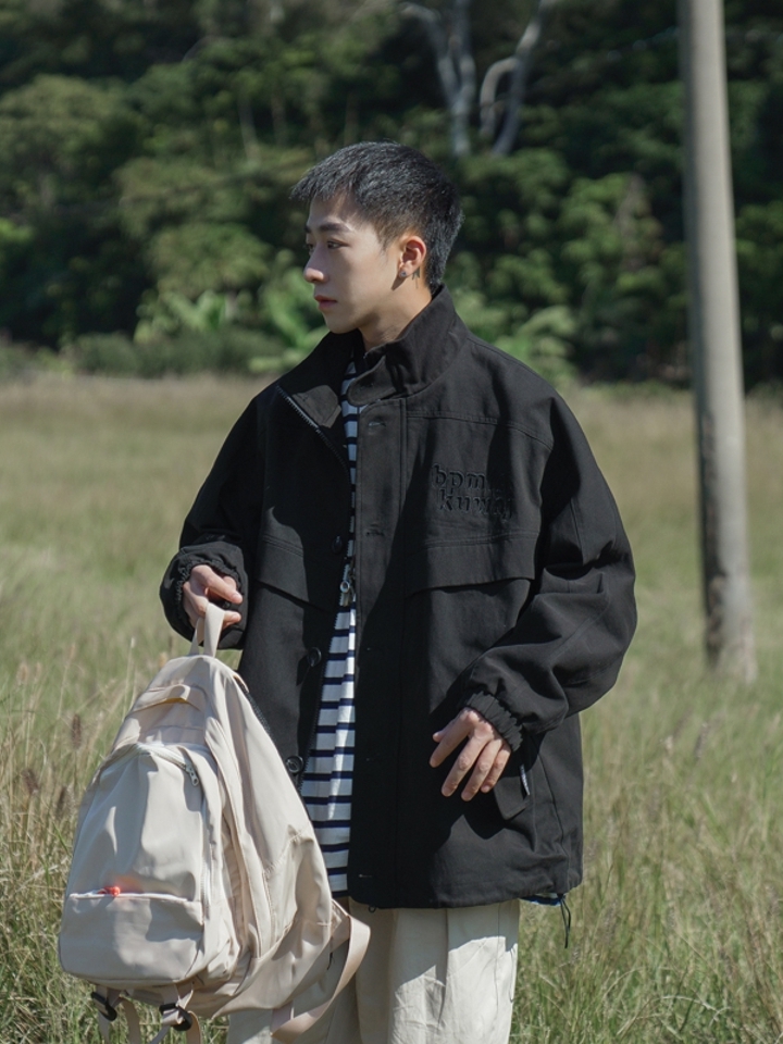 设计融入更多工装风格,衣身采用挺括且柔韧的复合军绿配色面料打造,正面图案带来少许学院风元素,搭配起来更有气质