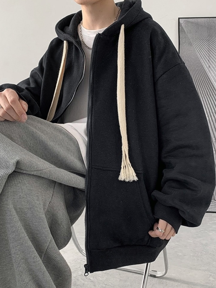 宽松的版型,适合大多数潮男穿着,上身还显得腔调感十足,连帽的设计,能够展现出年轻活力的feel。