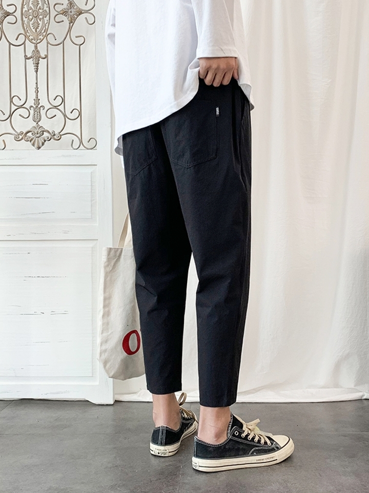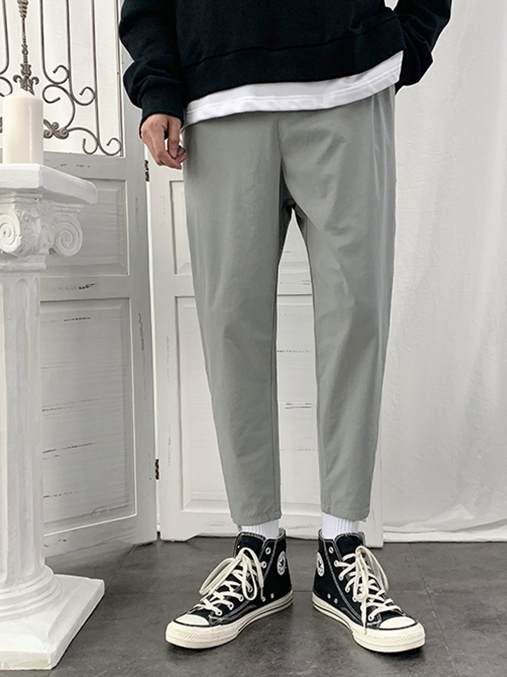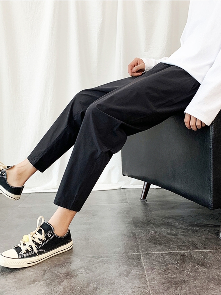 裤子采用轻薄透气的丝绵冰丝材质,柔软轻盈,在闷热的夏天穿出一丝清凉感。上宽下窄的小脚裤型,修饰腿部线条的同时,干练不显拖沓,穿出一丝休闲出街。