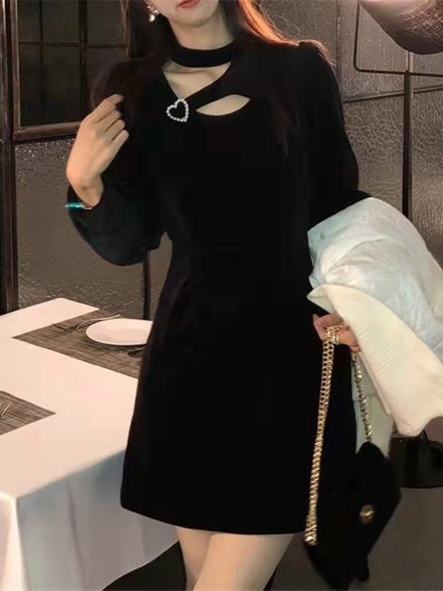 这款可单穿可打底的连衣裙,运用经典不过时的黑色色调,好看不挑人,随意搭配短靴就能呈现时髦的赫本风。
