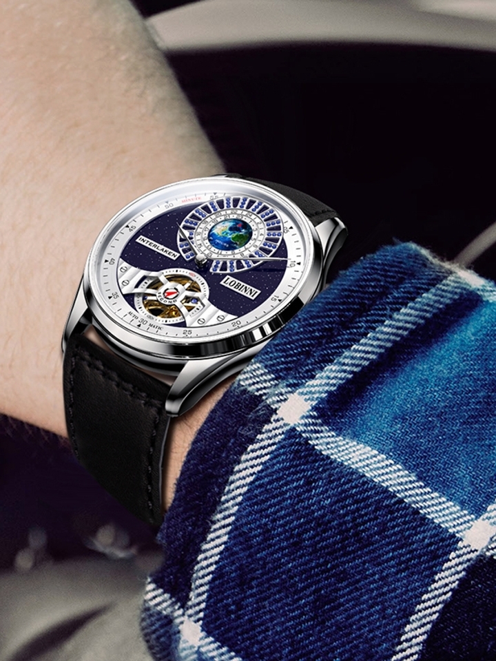 全的原装机械机芯其级不锈钢精钢的表壳,而且它质感出众的牛皮表带,搭配上耐磨防刮的蓝宝石镜面,让您佩戴起来加舒适,使得您能够加清晰的读取时间,抗腐蚀耐磨损澎湃动力、走时。