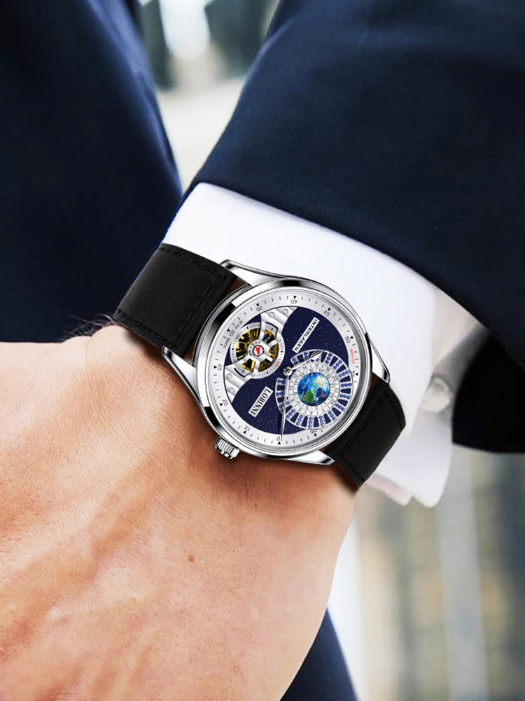 的精钢材质表带这款手表具的双透设计为此款腕表无限生命灵感,致彰显工艺美感腕间也多了一丝的厚重感,窥见机芯缜密的机械构造。
