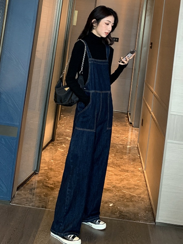 洋溢着满满青春气息的牛仔背带裤,让你瞬间减龄不少。宽松休闲的版型,完全不挑人穿,微胖的MM穿也很有范。
