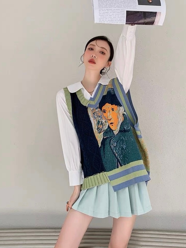 不难发现,今年很流行这款撞色针织马甲,性感V领的设计,衬托出小巧的脸型,穿上很显干练的气场。