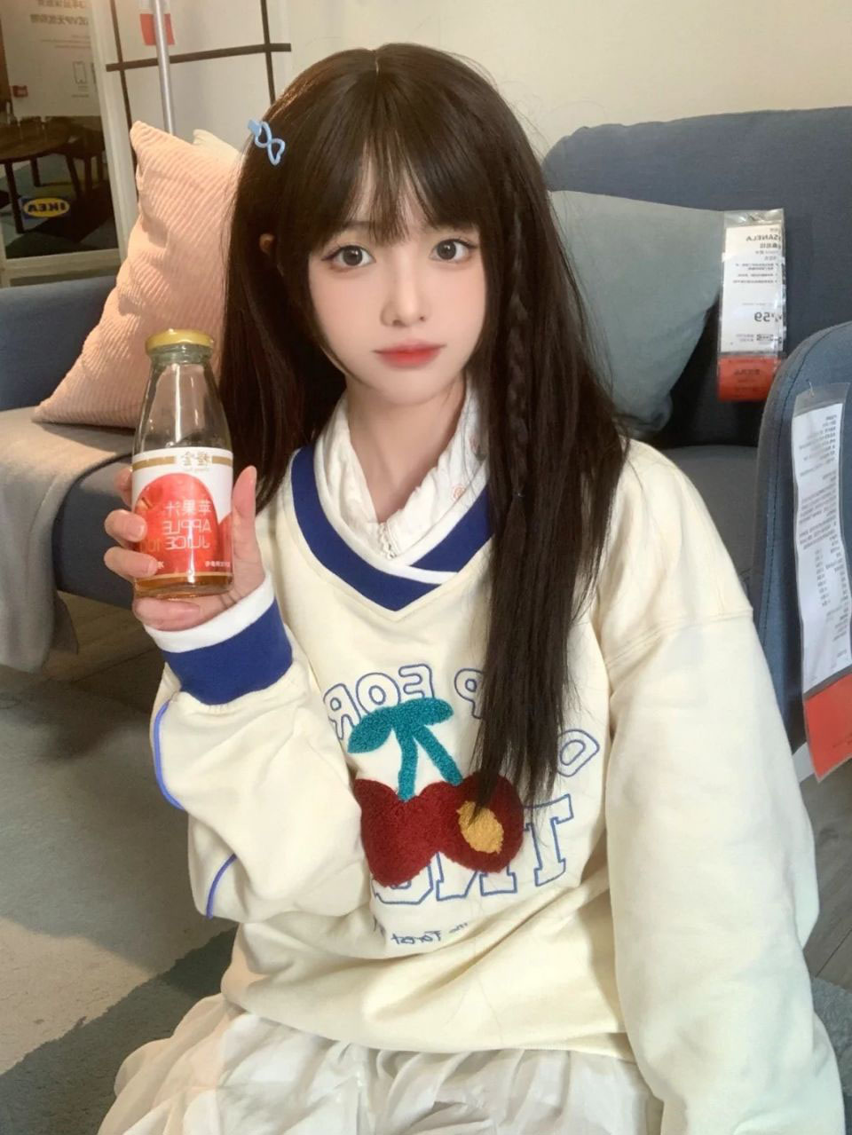 简约却不单调的一款卫衣,时尚的撞色领口,超级前卫,搭配胸前同色印花增添时髦的态度,袖口散边设计,自然随性,趣味性十足。