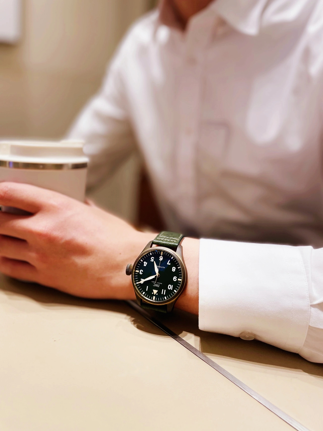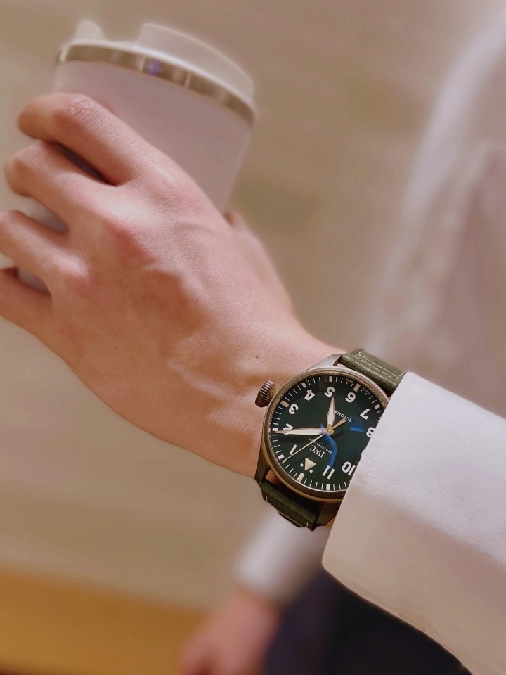 这款飞行员系列腕表的质感是超好的,全自动的机械机芯,能够随时精准时间,优质的绿色牛皮表带,比较的耐磨耐用。