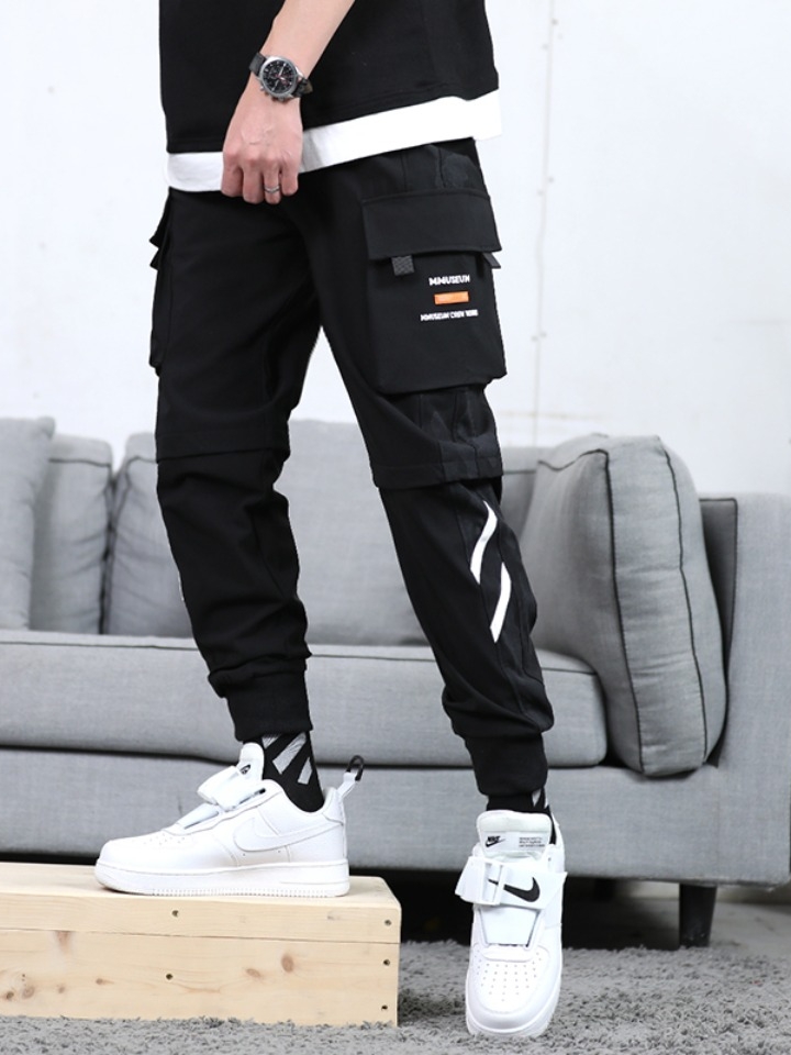 工装裤采用纯棉面料,质感十足,纹理清晰,有一定的厚度,但却又不算很厚,而且非常的柔软,上身感觉非常的棒,英文字母的刺绣与贴袋的设计。