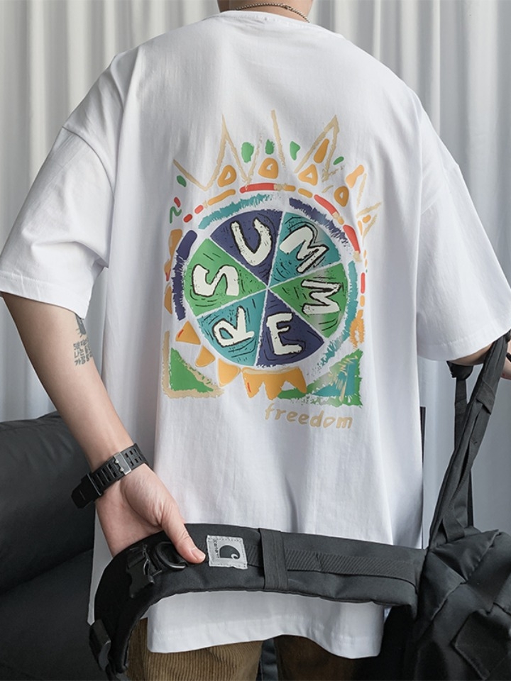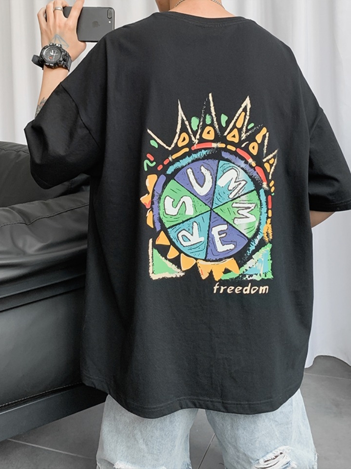 一件版型简约的个性短袖,选用清爽柔软又透气的高档莱卡棉面料,大牌的车线工艺和立体贴身的剪裁,环保健康的拨染印花技术,印花图案质感又漂亮,