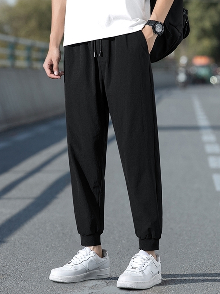 将时尚运动版型与流畅大气的宽松直筒设计结合,穿着轻松透气,舒适度极高,搭配简约抽绳松紧腰,便捷实用,新潮美观。