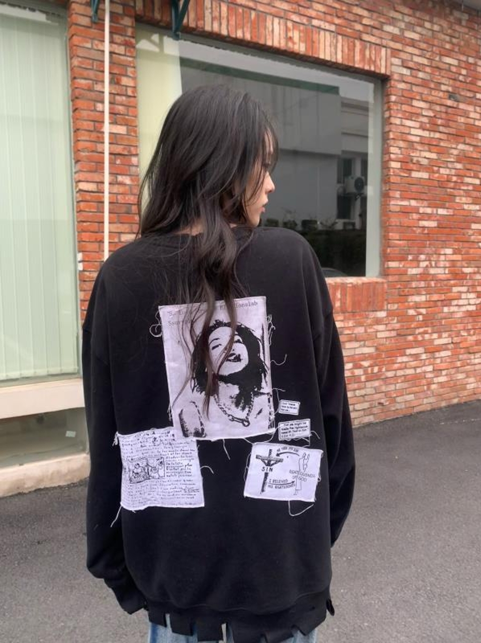 此款卫衣采用宽松休闲的款式制作,服装以黑色为底色,更具潮范。印花的上下边缘加入了两品牌的logo印花,有效提升了各自品牌的辨识度。