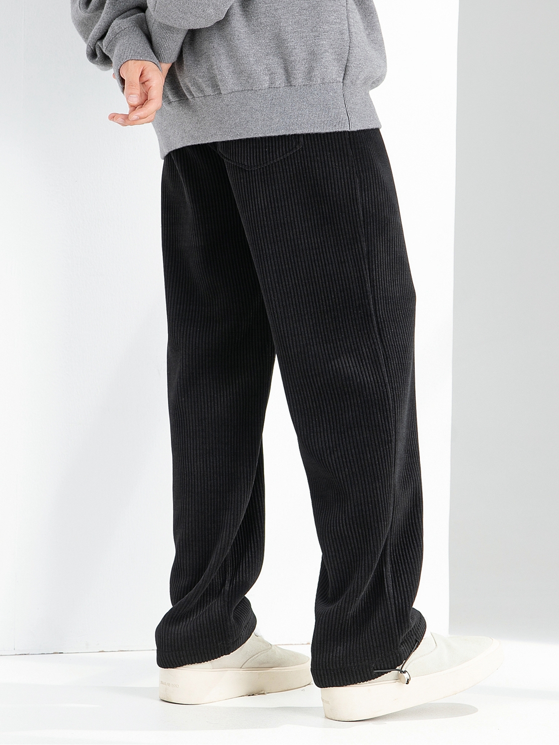 这款长款面料精选优质灯芯绒,质地厚实且柔软舒。自带质感的细条纹理令美观指数瞬间上升,个性的后袋很有设计感,一侧还配有白色贴布。束脚造型迎合休闲需要,将干练简约风范延续。