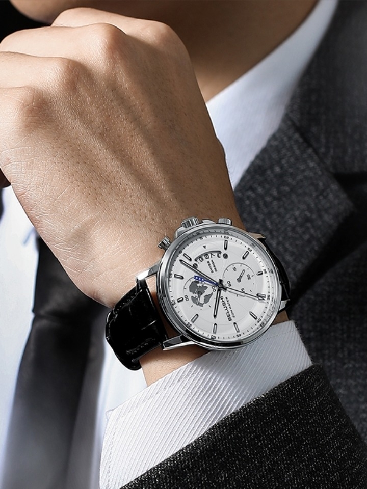 蓝光特种玻璃面,透光性更好,镜面在灯光下或者侧面看会出现炫彩蓝光!柔软表带光泽度好有质感,配戴舒适,让你优雅的在时光中穿梭。
