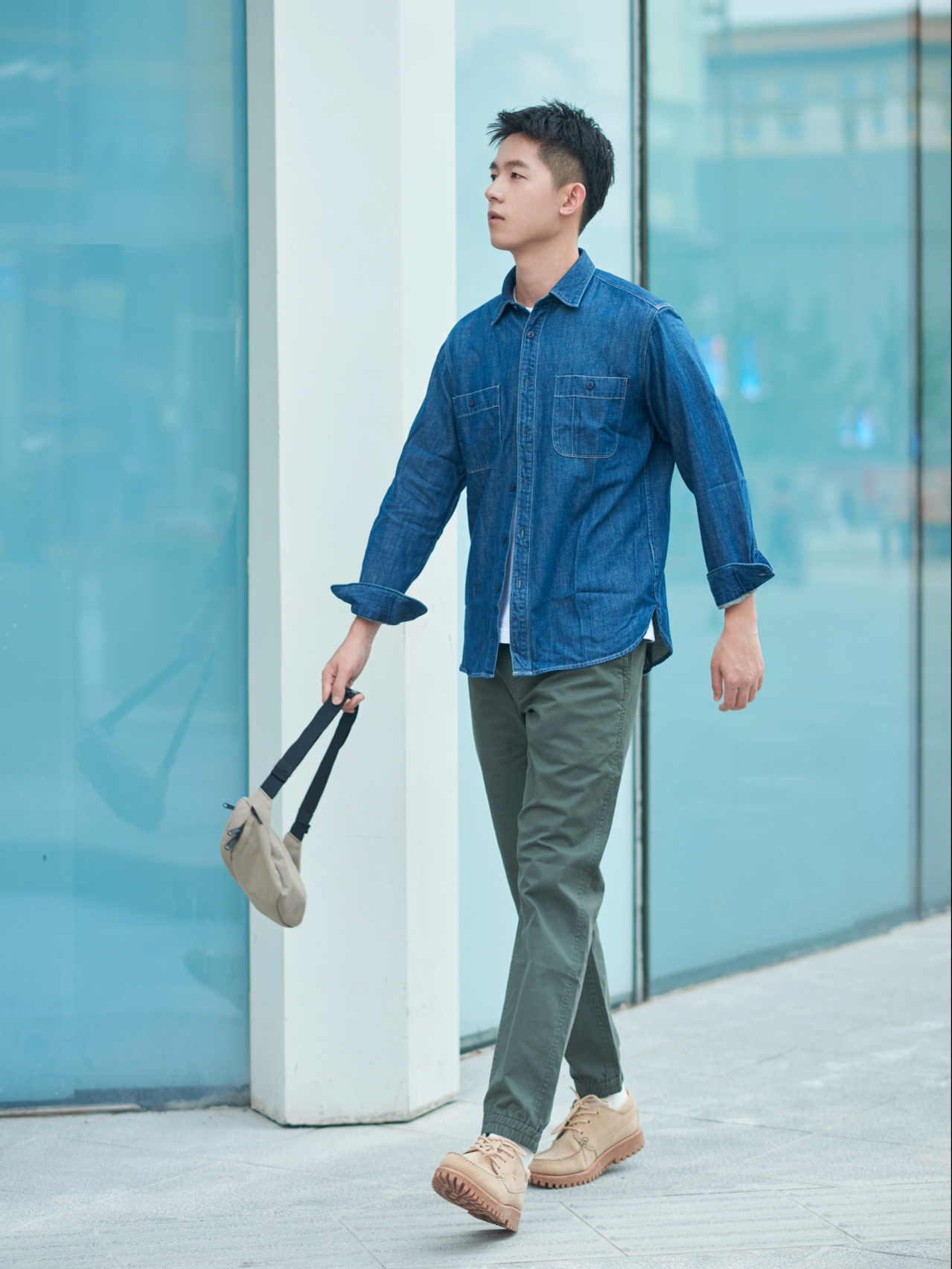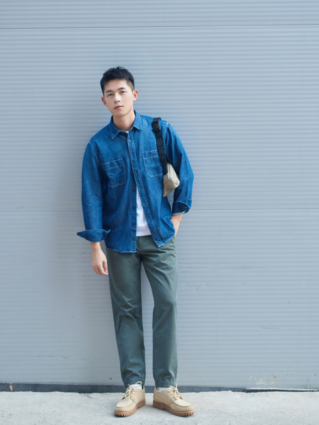 立体裁剪的牛仔衬衫搭配着水洗复古的制作,休闲中带着复古时尚的韵味,又不闷热,优雅从容。选择一款素色的休闲连帽卫裤,印花图案的设计更是彰显潮流,在选择一双经典的白色运动鞋,更是轻易展示潮男本色,精致特别,又不过于张扬。