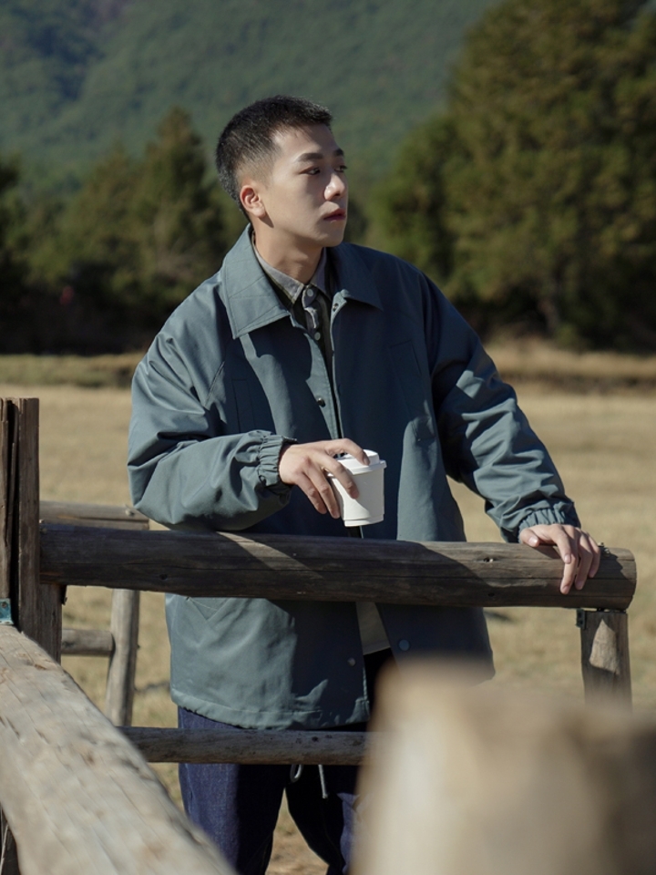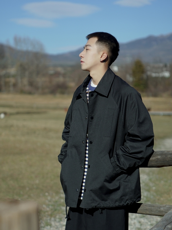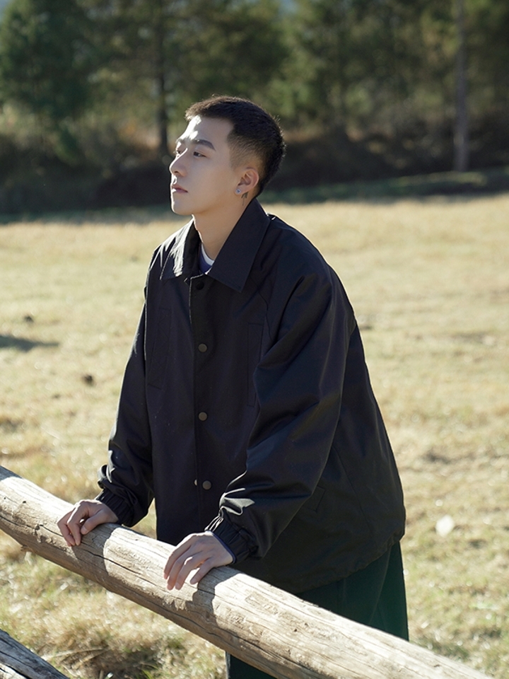 一款具有年代气息的教练夹克,翻领的款式搭配落肩袖的设计,带来了强烈的视觉对比,增加了复古街头气息