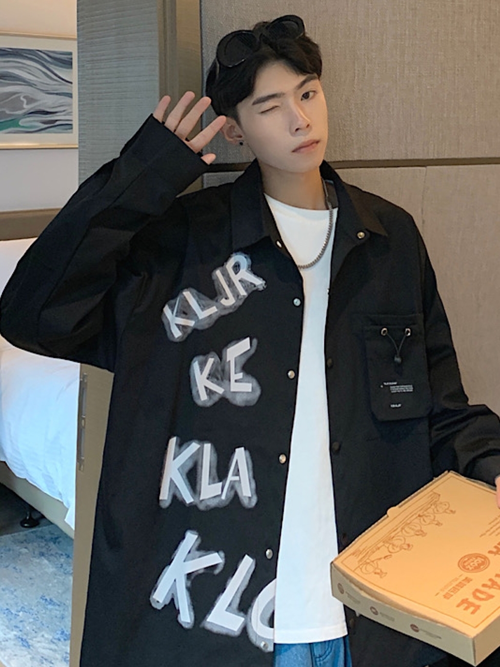 这是一款青春时尚的字母印花衬衫外套,超宽松的衣身版型设计,对身材没有任何的挑剔,上身很是遮肉显瘦。