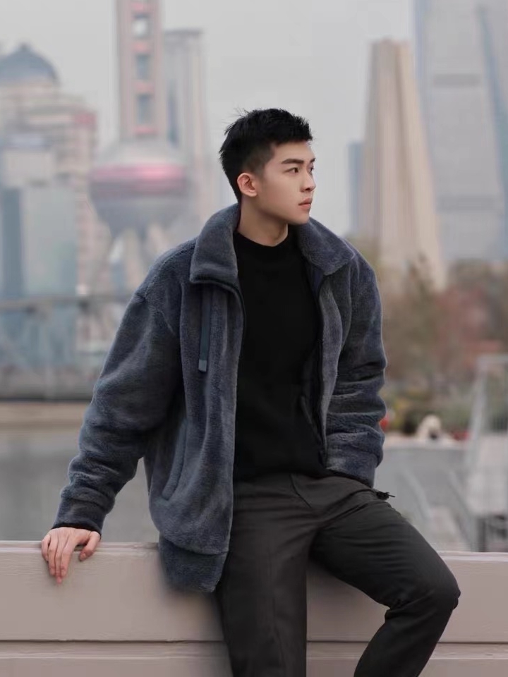这款夹克外套选用了优质的羊羔毛制作,保暖舒适,亲肤柔软;休闲的立领设计,不仅挡风御寒,更帅气,干净利落,融入了搭扣的设计,潮感十足。