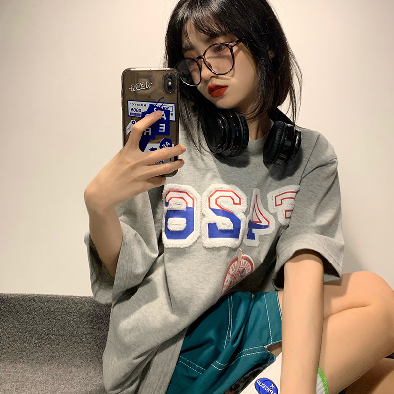 这款t恤是简约的风格,宽松的版型,时尚百搭,胸前的字母印花,很有个性,搭配牛仔裤或者短裤都很好看。