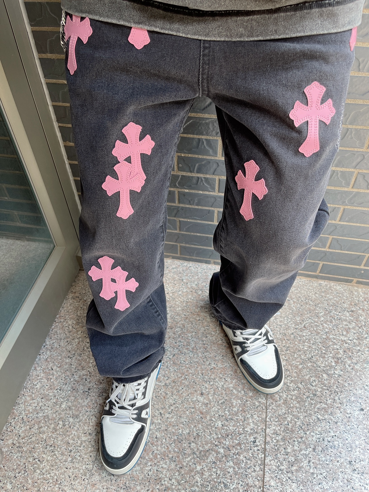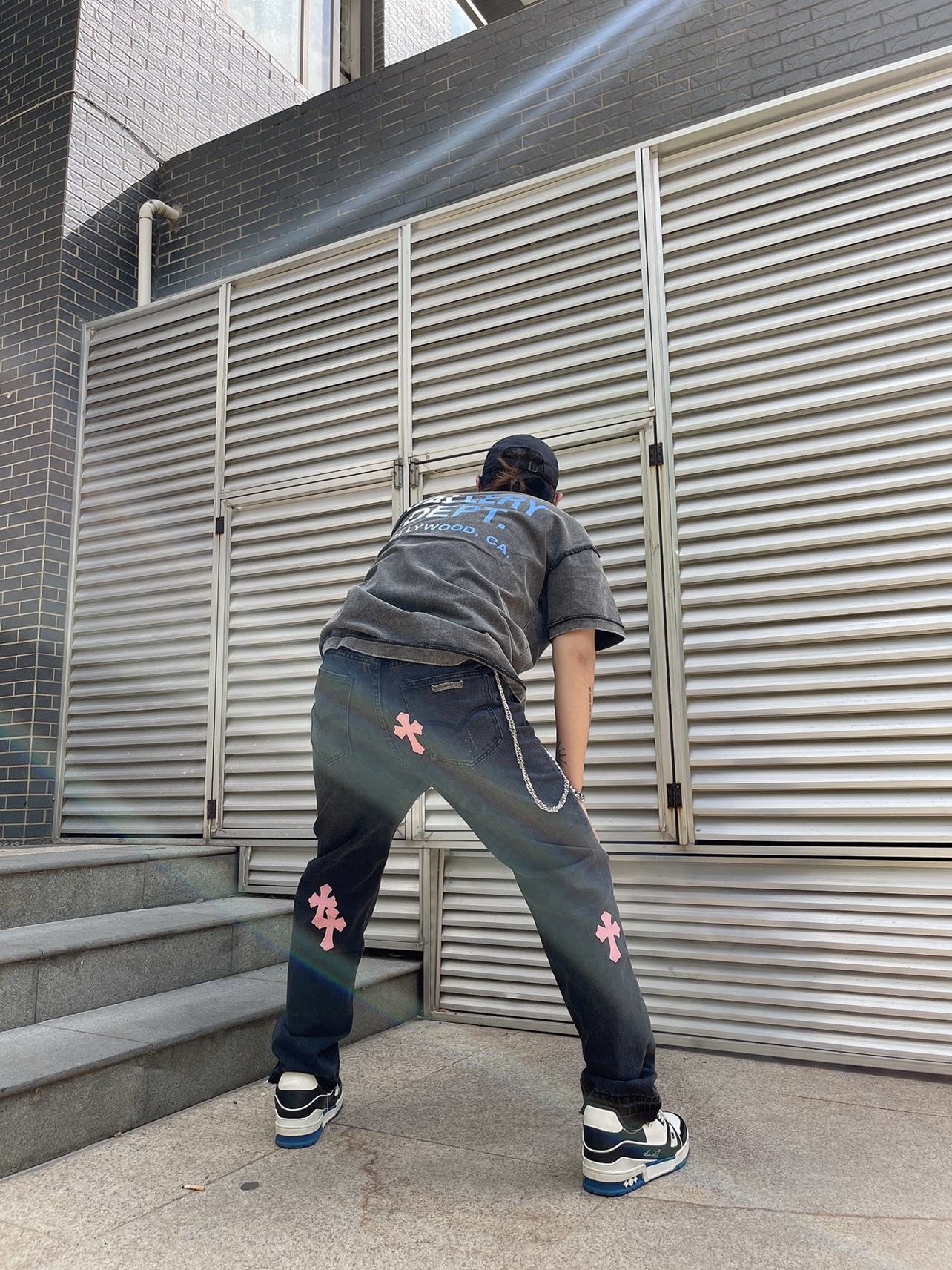 十字架设计,时尚感十足,经典牛仔裤,时尚又百搭。