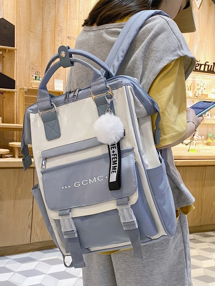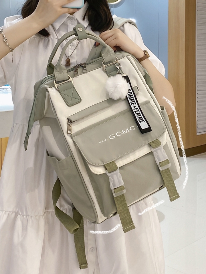 这款双肩背包采用时尚的撞色工艺设计,搭配流畅的线条,立体感好,很是靓丽。优质的帆布搭配PU材质,质感出色。