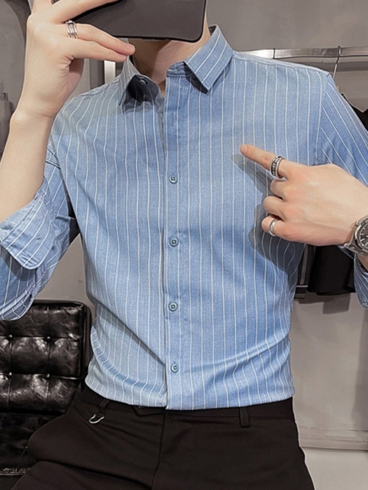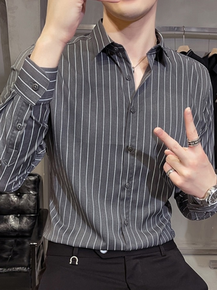这款衬衫精选新型混纺面料制成,透气清爽,贴合身形的立体剪裁非常简洁大气,竖条纹的版型彰显优雅质感,非常独特的一款。