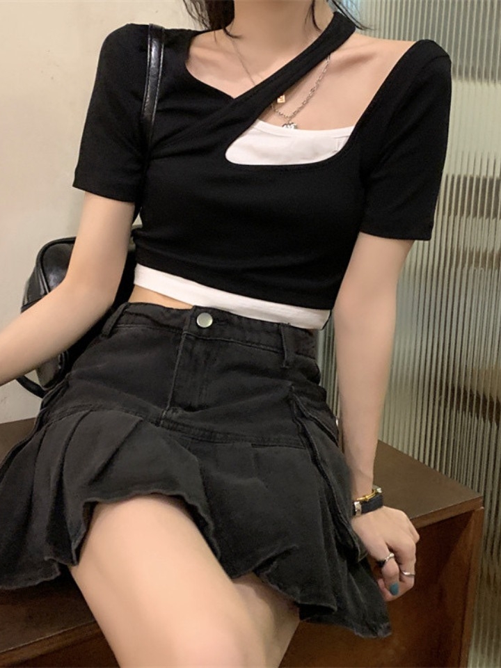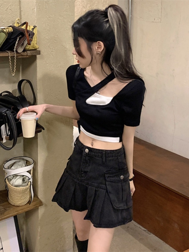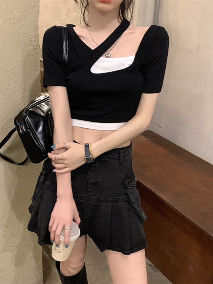 假两件式V领设计,摆脱圆领给人的单调印象,清新条纹搭配宽松剪裁,减轻夏里的烦闷之感,经典七分袖,修饰手臂线条,随性自然,整件上衣充满着清新的