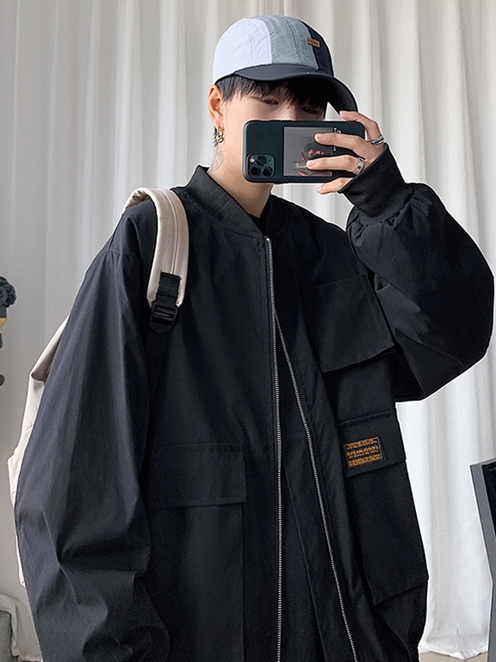 而如果单单只有的调的话,难免会显得有点单调感,而的设计便能让夹克既吸睛又显潮流感,让外套自带出工装风格,的立领宽松夹克外套,因此便特地在夹克上设计了的拉链和的装饰。