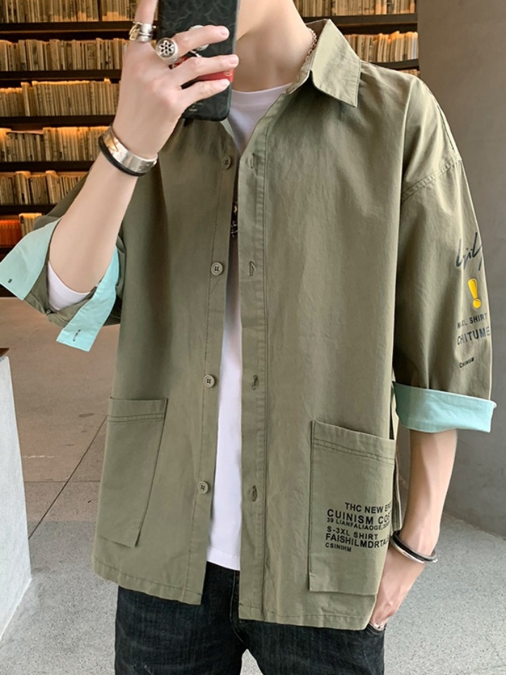 这款深灰色的格纹衬衫,就给人清新的日系“盐系男生”的感觉,低调内敛的色调搭配看起来就十分的清爽啊,稍微磨毛的面料质感,手感更加的细腻柔软,而衬衫是工装的设计,做旧的效果,清新有气质,比较百搭。