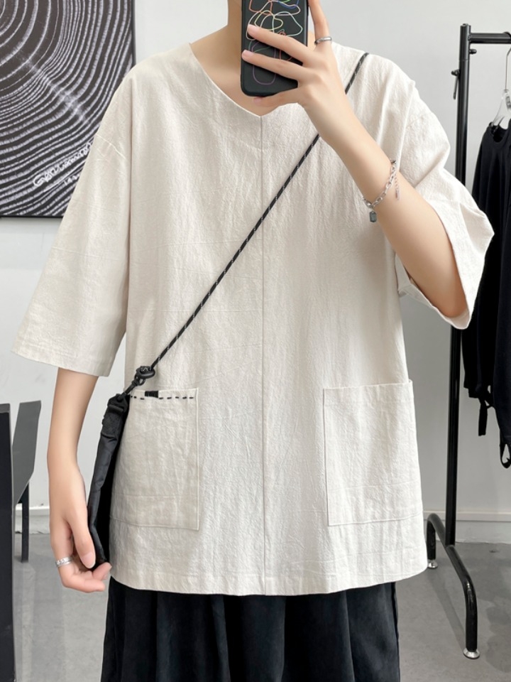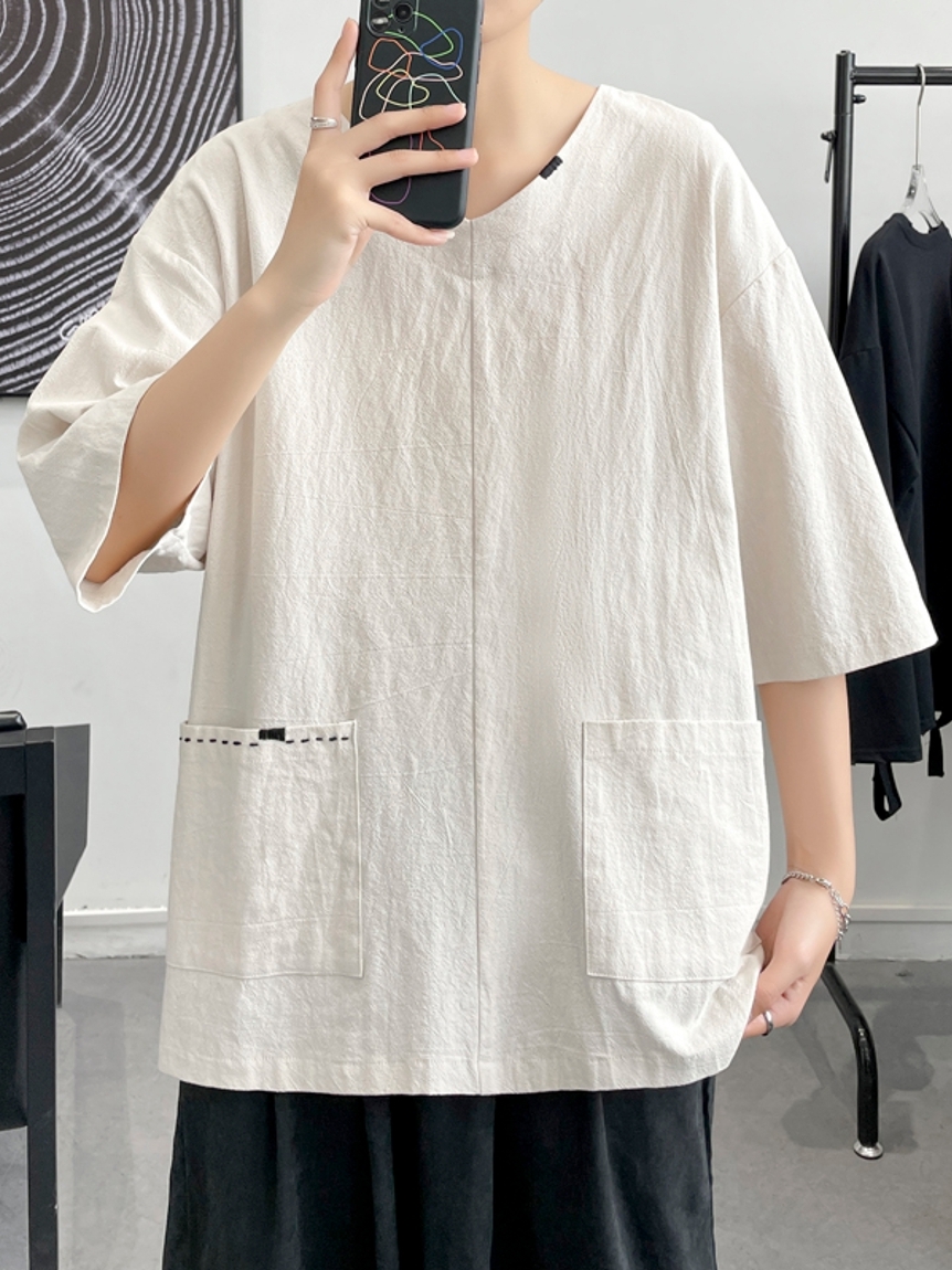 经典的T恤款式,非常百搭耐穿,质感软糯的亚麻面料,穿着舒适柔软,上身立显清新质朴的文艺气息。领口侧边的缝线从领前一直延伸至后背,一扫造型的单调感,与两侧略微开叉的衣摆相呼应,在堆叠立体的褶皱间尽显独特个性。