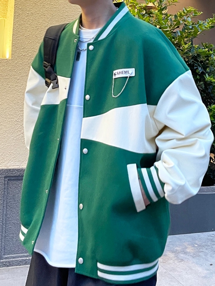 宽松的棒球服学院风十足,浓浓的学院风让你有重返校园的感觉,为你瞬间减龄,别具特色的拼色设计,带来强烈的视觉感受,格外吸睛抢眼,上身效果非常赞。