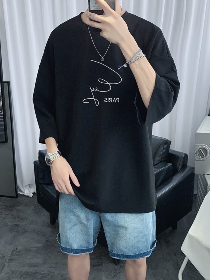 这款t恤是简约的风格,宽松的版型,时尚百搭,胸前的字母印花,很有个性,搭配牛仔裤或者短裤都很好看。