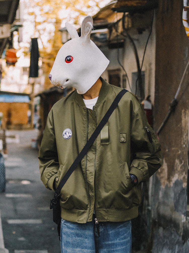 选用时下十分流行的MA-1飞行夹克作为款式设计,加入了大插袋的设计,尤具结构感;袖口拉链开合设计,皮革拉链头装饰,细节处更凸显品质感。