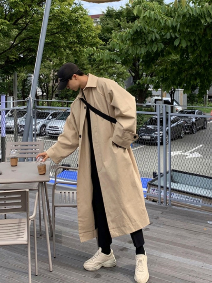 过膝版型设计,展现出势不可挡的大气范儿,非常时尚亮眼,吸引眼球,简洁西服领很显干练。宽松得不挑剔任何身材,就算肚腩有肉也能遮盖得很好,西装式的翻领,优雅有质感,无论是商务或日常都合适穿着,两侧口袋让衣身更有立体丰富的感觉,腰带随性系扣,洒脱有个性。