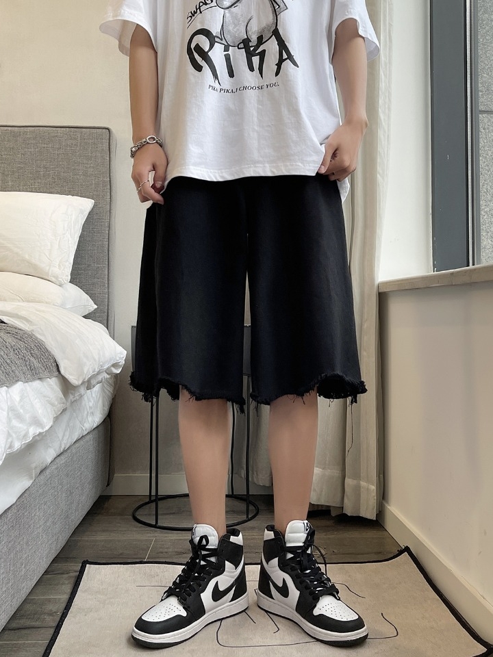 很简洁的设计款式,穿着起来充满了独特的个性气息,裤腿处的不规则设计,将短裤的时尚度大大增强了,很适合日常穿着的一款,搭配简洁的服装便可以时尚出街。