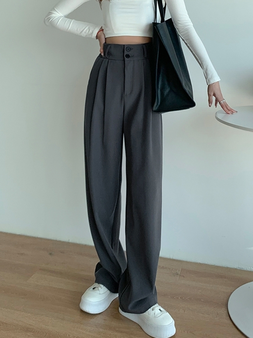 直筒的西裤版型调整了腿型,穿出了纤细美腿,丝毫不显臃肿肥大,经典灰色彰显极简主义,简约有型,自然穿出了干练和沉稳的气质。